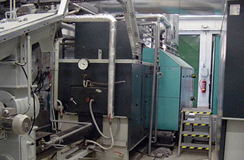 Neue Warmwassergaskesselanlage, Leistung 720 kW, mit Dampfverteilung und Übergabestation für Warm- und Gebrauchswasser.